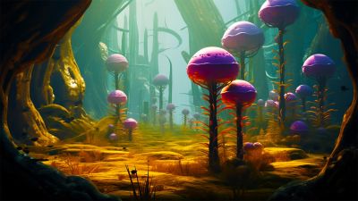This planet is covered with plants that brightly illuminate the night. While bothersome to some, they hold potential for substantial economic gain, albeit with environmental consequences.